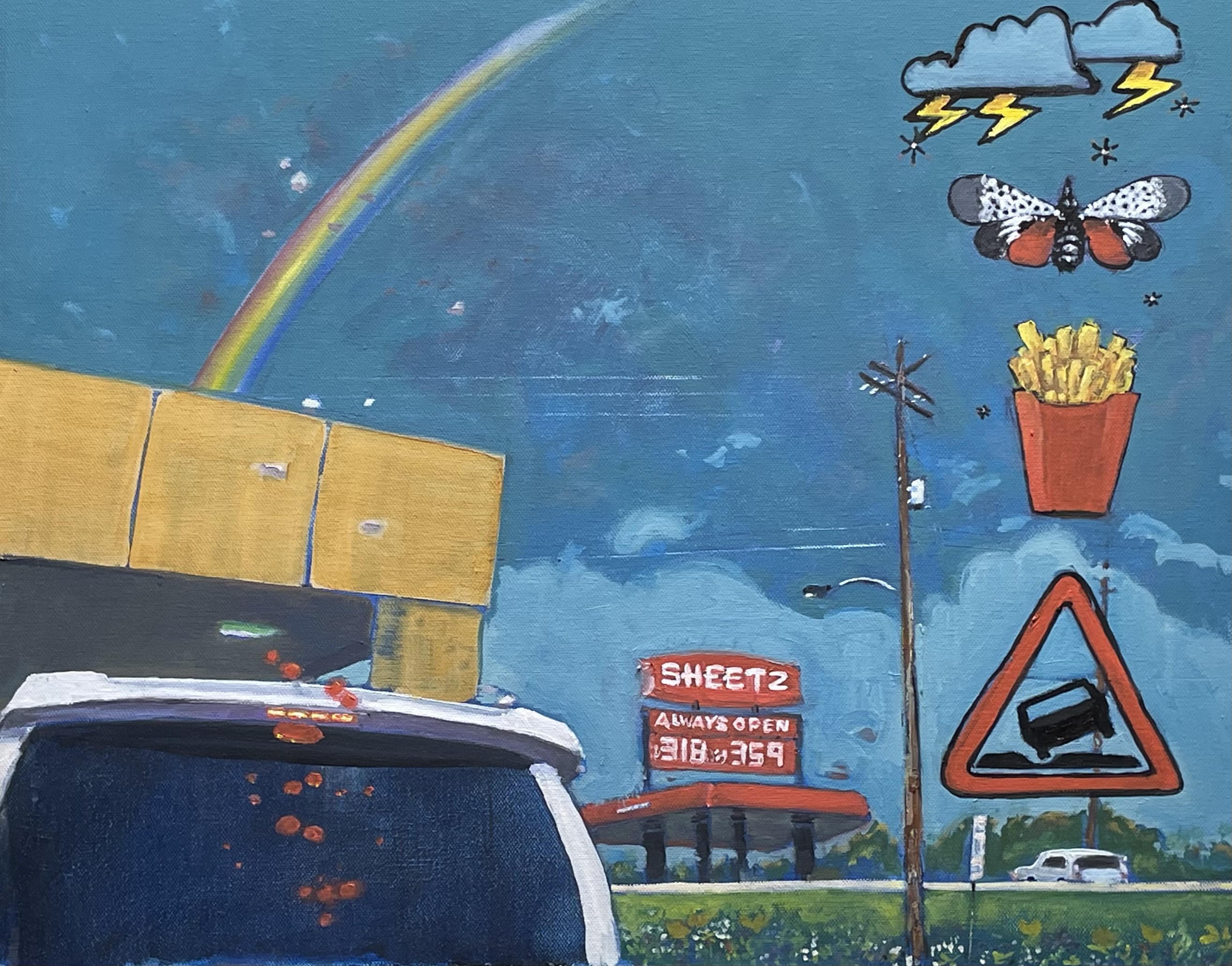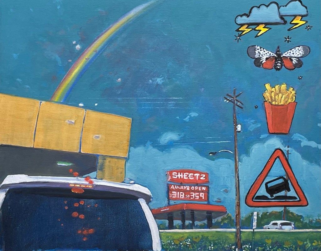 ART: I finished the “But there’s a rainbow over Sheetz”, oil on canvas, “20”x16″.