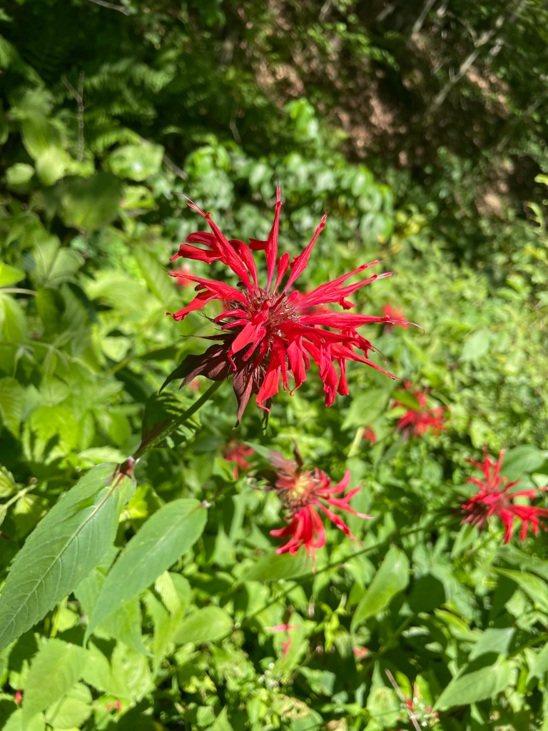 I spotted a flower new to me at Laurel Hills State Park, a scarlet beebalm on a bike ride later in the day.