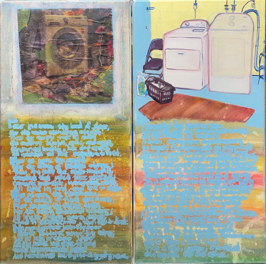 Art: I am painting something. I had a rough concept. Two similar panels. Each features a sonnet; each features an image of a washing machine or basement laundry room. The sonnet would come from a homage to a eulogy or funeral song from a Shakespeare play. Because my washer died, I needed to get a new one, and I needed to paint something to pay for the washer. However, I ask in all sincerity, are my paintings really worth all that?