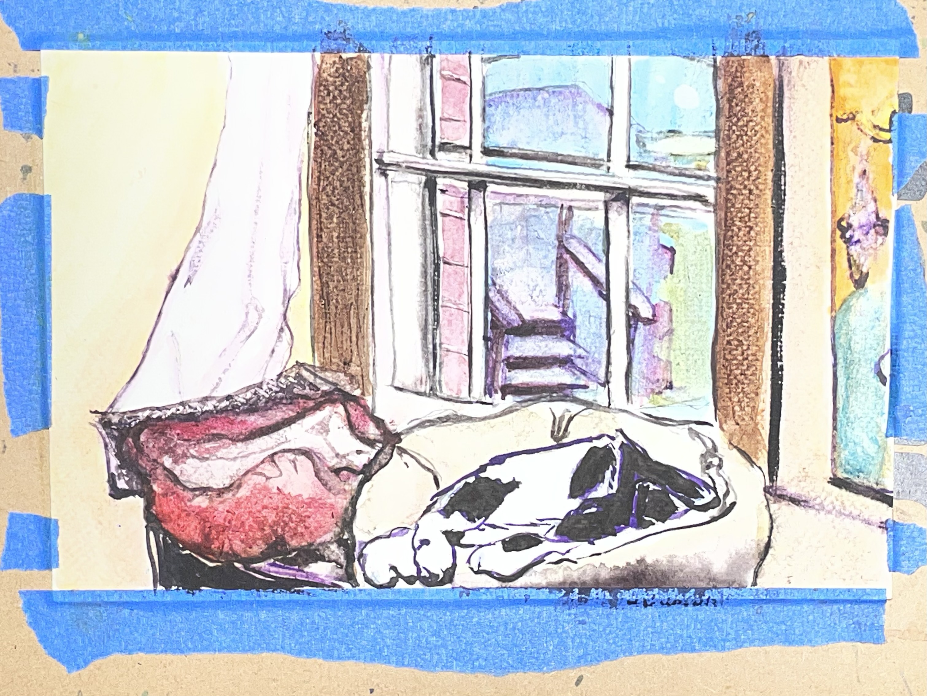 ART: Watercolor cat painting. I am dipping a toe this week in the medium. The banner is at Redstone Creek crossing on 201.